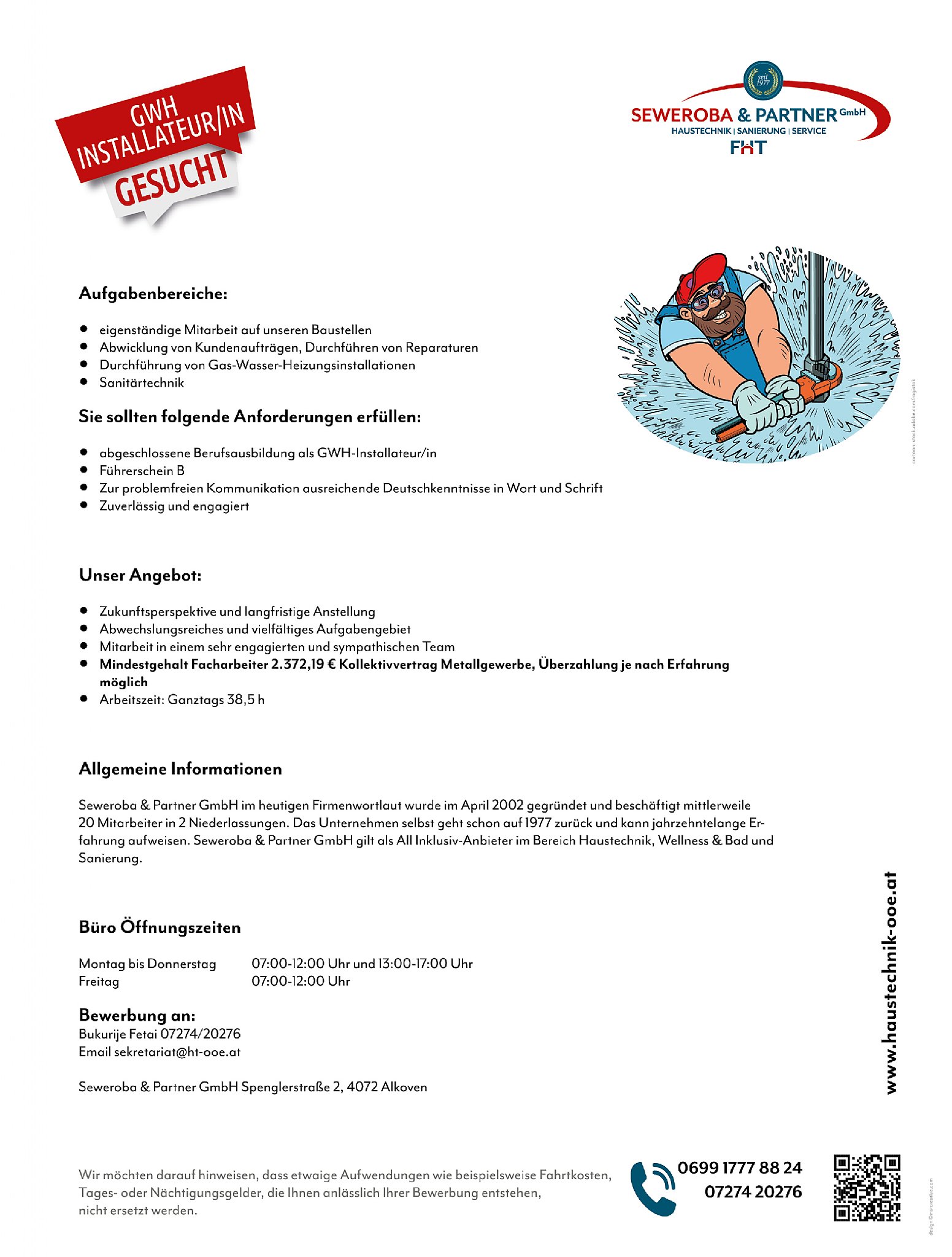 GWH-INSTALLATEUR/IN BEI SEWEROBA GESUCHT